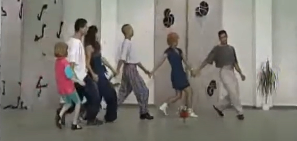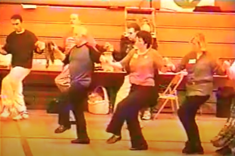 Atanas Kolarovski leads Dafino, Macedonian dance he taught at Laguna Festival in 2002.